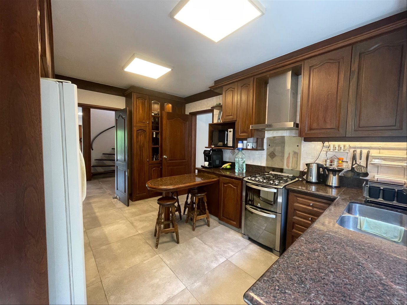A continuación de la recepción en tres ambientes, encontramos un gran estar con estufa leña, comedor diario y amplios espacios para relajarse y disfrutar con comodidad. Moderno baño social. La ubicación de la cocina es muy funcional ya que permite conectar con el área de estar y con el comedor social. Además cuenta con una entrada de servicio lateral. La cocina es muy cómoda, cuenta con office y amplios placares. Se conecta con sector de lavadero, dormitorio de servicio amplio y luminoso con un moderno baño de servicio.